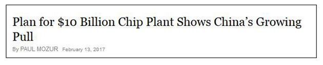 “美國幾乎所有大型半導體企業都收到過中國代表政府機構的主體發出的投資要約,”總部設在德國的智庫墨卡托中國研究中心(Mercator Institute for China Studies)發布的一份報告稱。該報告還接著表示,中國最新的工業政策《中國制造2025》將半導體列為了需要提升的關鍵領域。